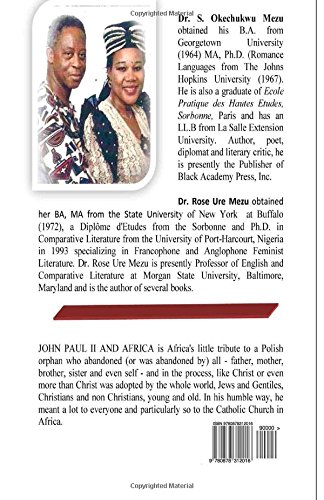 JOHN PAUL II AND AFRICA is Africas little tribute to a Polish orphan robbed by death of all – father, mother, brother, sister, and almost even self – but would become all to everyone – a Philosopher, Theologian, Author and Pope. It is as it should be for like Christ, or even more than Christ, he was adopted by the whole world, Jews and Gentiles, Christians and non-Christians, young and old. In his humble way, he meant a lot to everyone but something special to the Catholic Church in Africa.